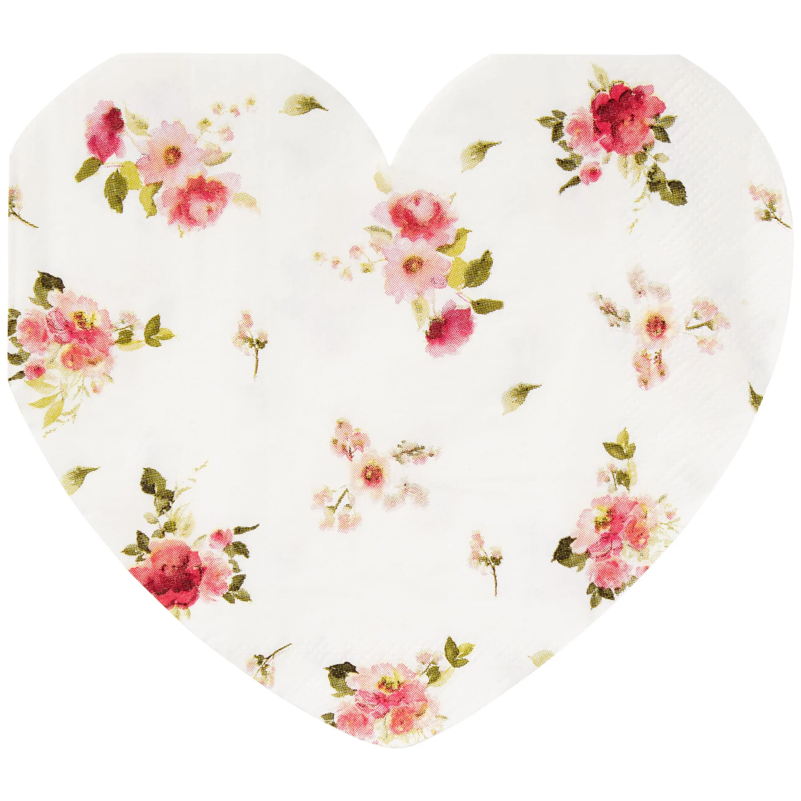 Floral Heart Die Cut Heart Shaped Lunch Napkins. Napkins are 3-Ply quality napkin paper stock. 20 Count Lunch napkins per pack