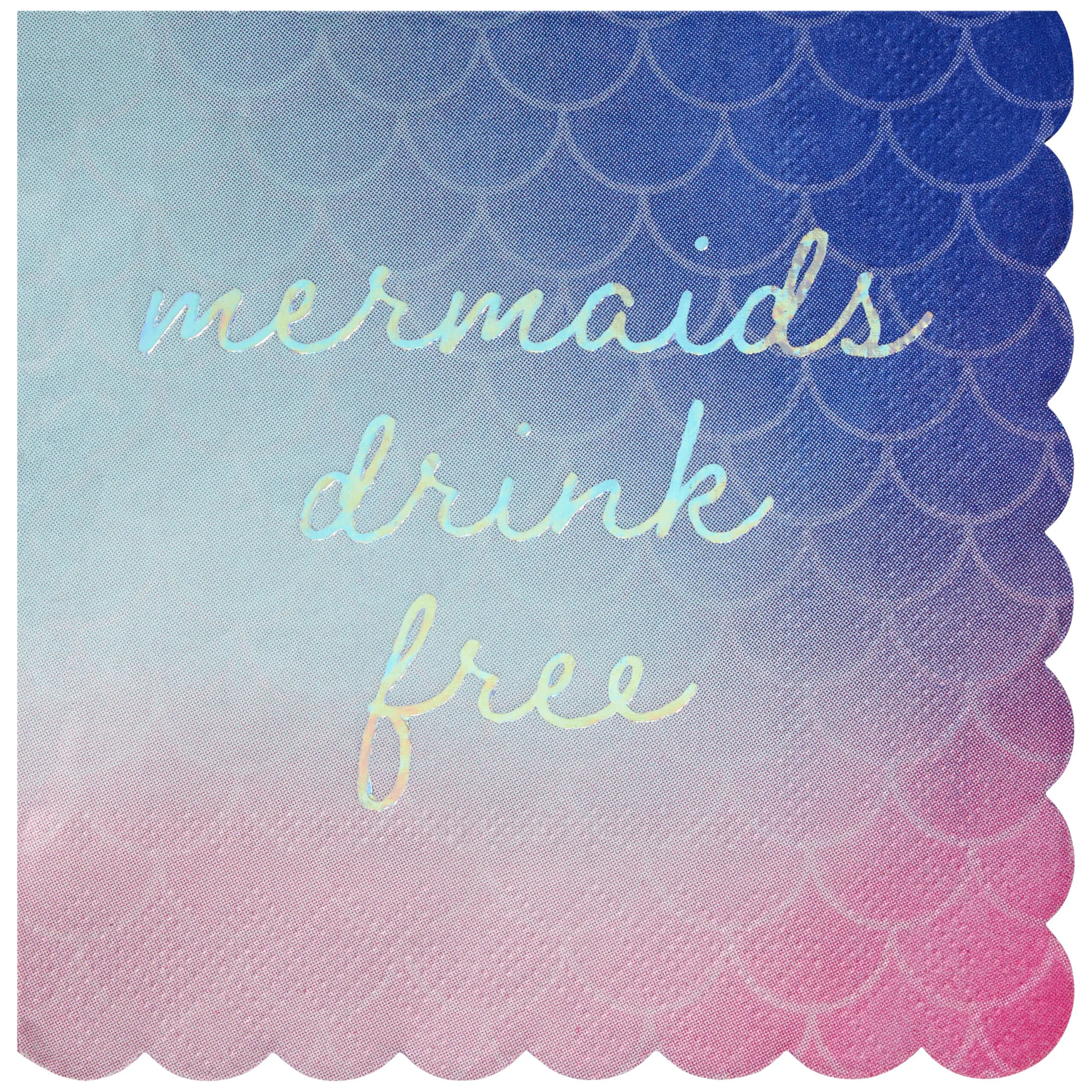Mermaids Drink Free Beverage Napkins with holographic foil and scallop edge. Napkins are 3-Ply quality napkin paper stock. 20 Count Beverage napkins per pack