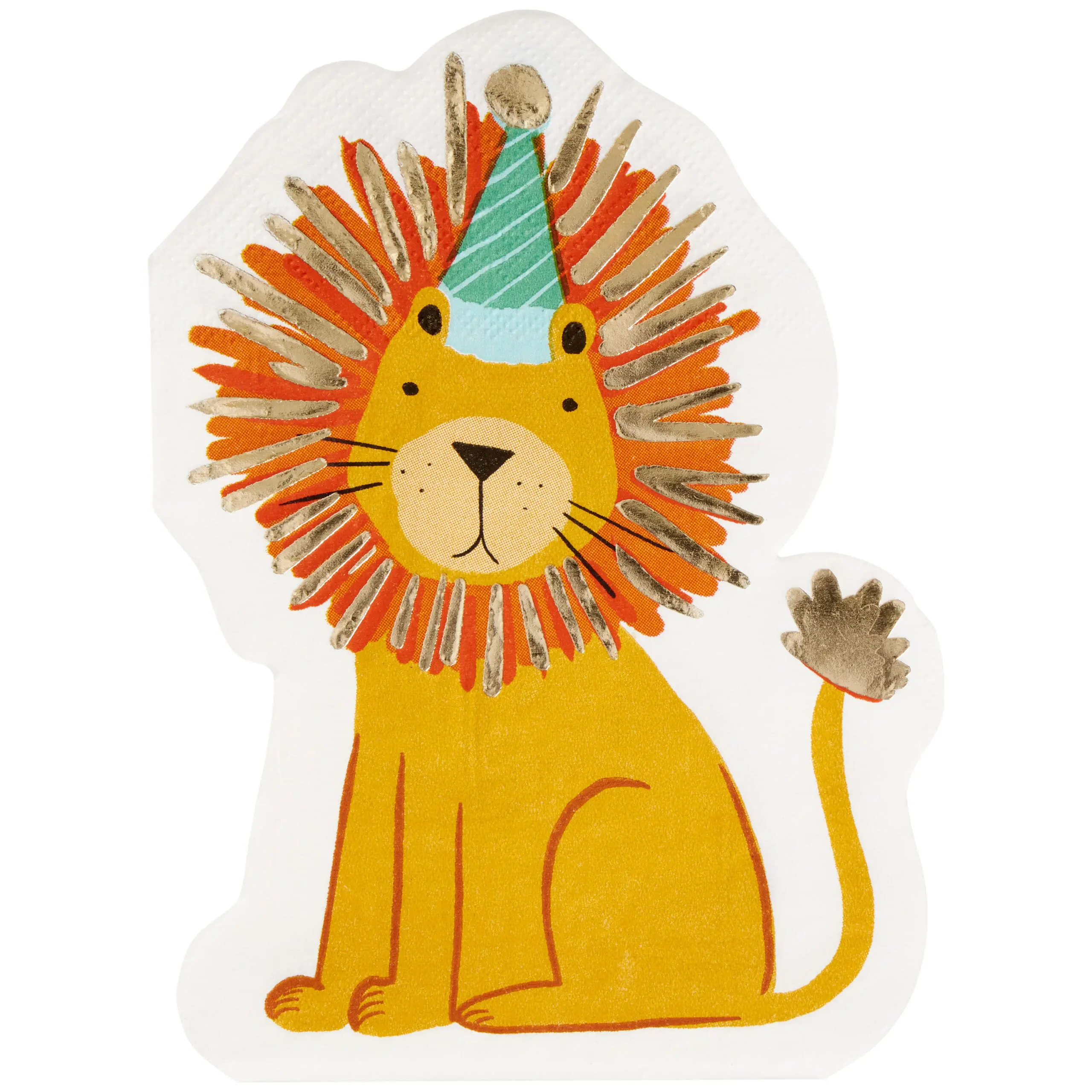 Party Animal Lunch Napkins. Lunch napkin are die cut in lion shape with gold foil accents. Napkins are 3-Ply quality napkin paper stock. 20 Count Lunch napkins per pack