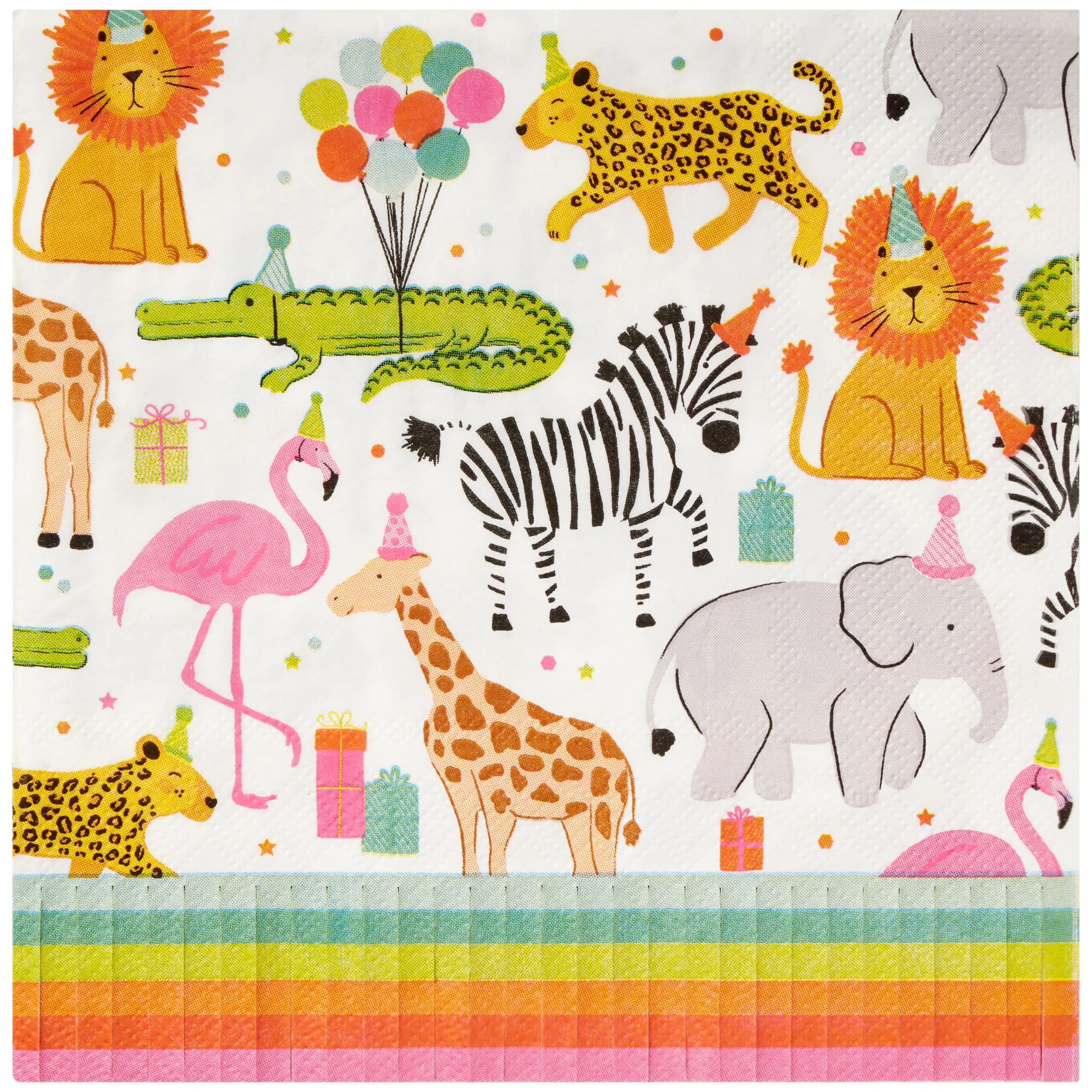 Party Animal Lunch Napkins. Lunch napkin have die cut fringe border with gold foil accents. Napkins are 3-Ply quality napkin paper stock. 20 Count Lunch napkins per pack