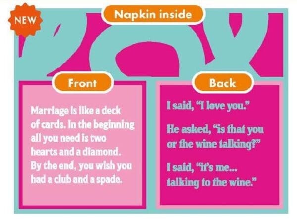 These 5″x5″ napkins feature 2 popular designs on front and back, with a colour coordinating pattern on inside. 20 (3 ply) napkins per pack.