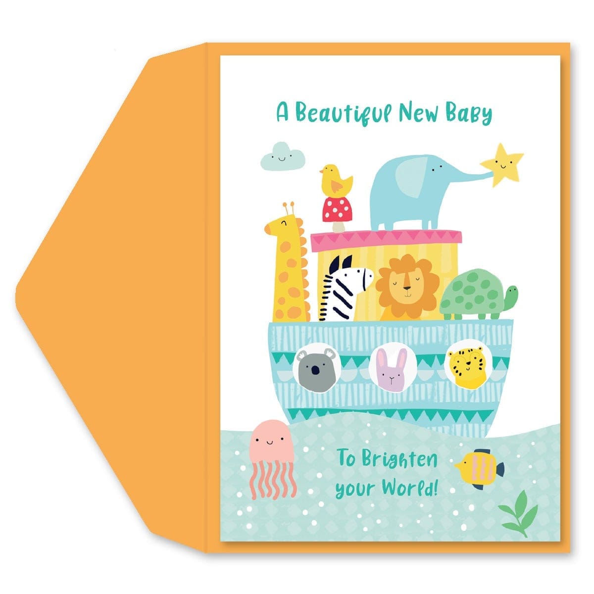 This 4.75″ x 6.62″ greeting card features glitter and is paired with a colour-coordinating envelope. INSIDE: Congratulations on this new adventure! It’s sure to be a great one.