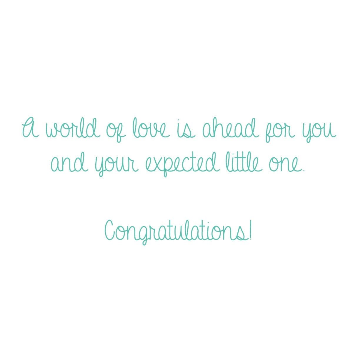 This 4.75″ x 6.62″ greeting card features glitter and is paired with a colour-coordinating envelope. INSIDE: A world of love is ahead for you and your expected little one. Congratulations!