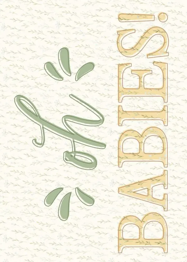 4.5″x6.25″, printed on linen paper, with coordinating envelope. Printed in Canada. Inside greeting: Double the joy, double the love. Congratulations on your precious twins!