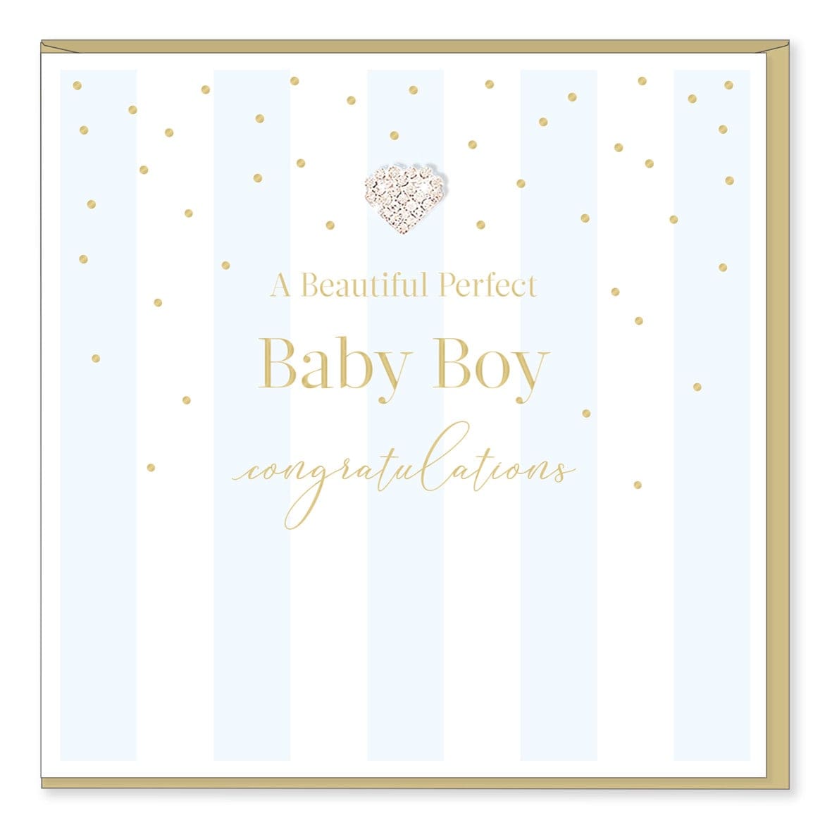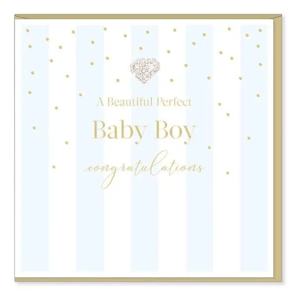 Mad Dots Cards. This 15cm x 15cm greeting card is printed on cardstock, features gold foil details and is embellished with a diamante jewel. Cellophane wrapped with a pearlescent gold envelope. Made in England. INSIDE: Blank