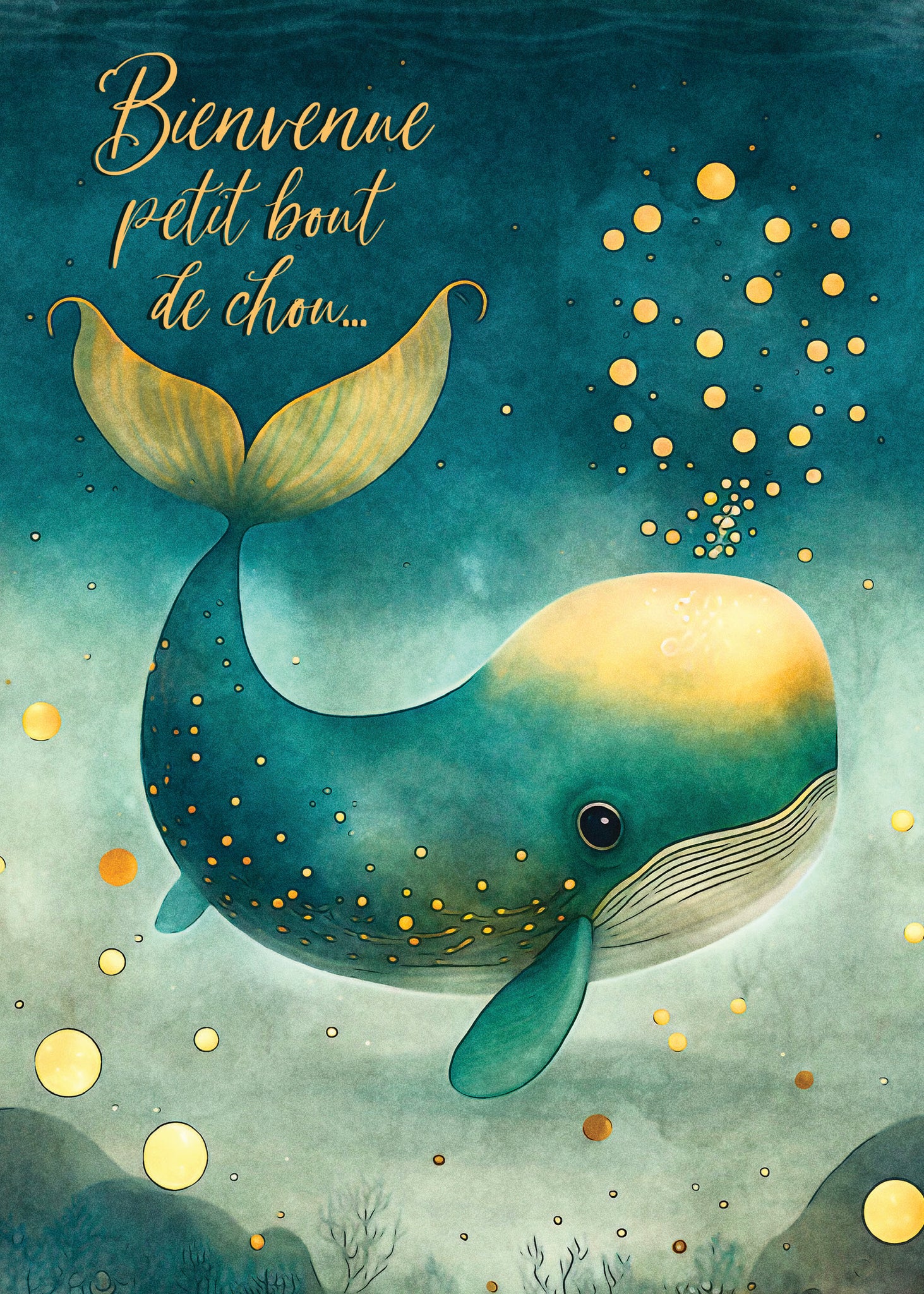 Carte 5″ x 7″ imprimée sur du papier lin couleur. À l’intérieur: Félicitations pour votre nouveau membre de la famille. Imprimé au Canada.