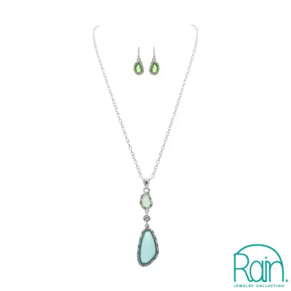 Product materials may include zinc, brass and steel with silver and rhodium plating. Lead safe. Includes necklace and matching earrings.