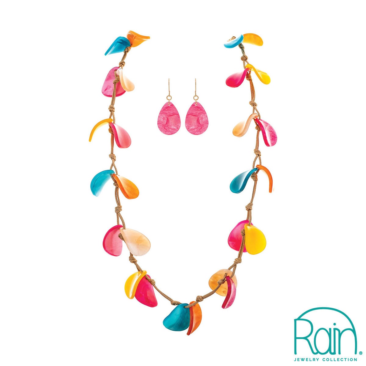 Product materials may include zinc, brass and steel with silver and rhodium plating. Lead safe. Includes necklace and matching earrings.