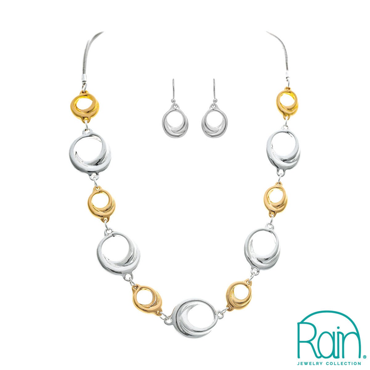 Product materials may include zinc, brass and steel with silver and rhodium plating. Lead safe. Includes necklace and matching earrings.