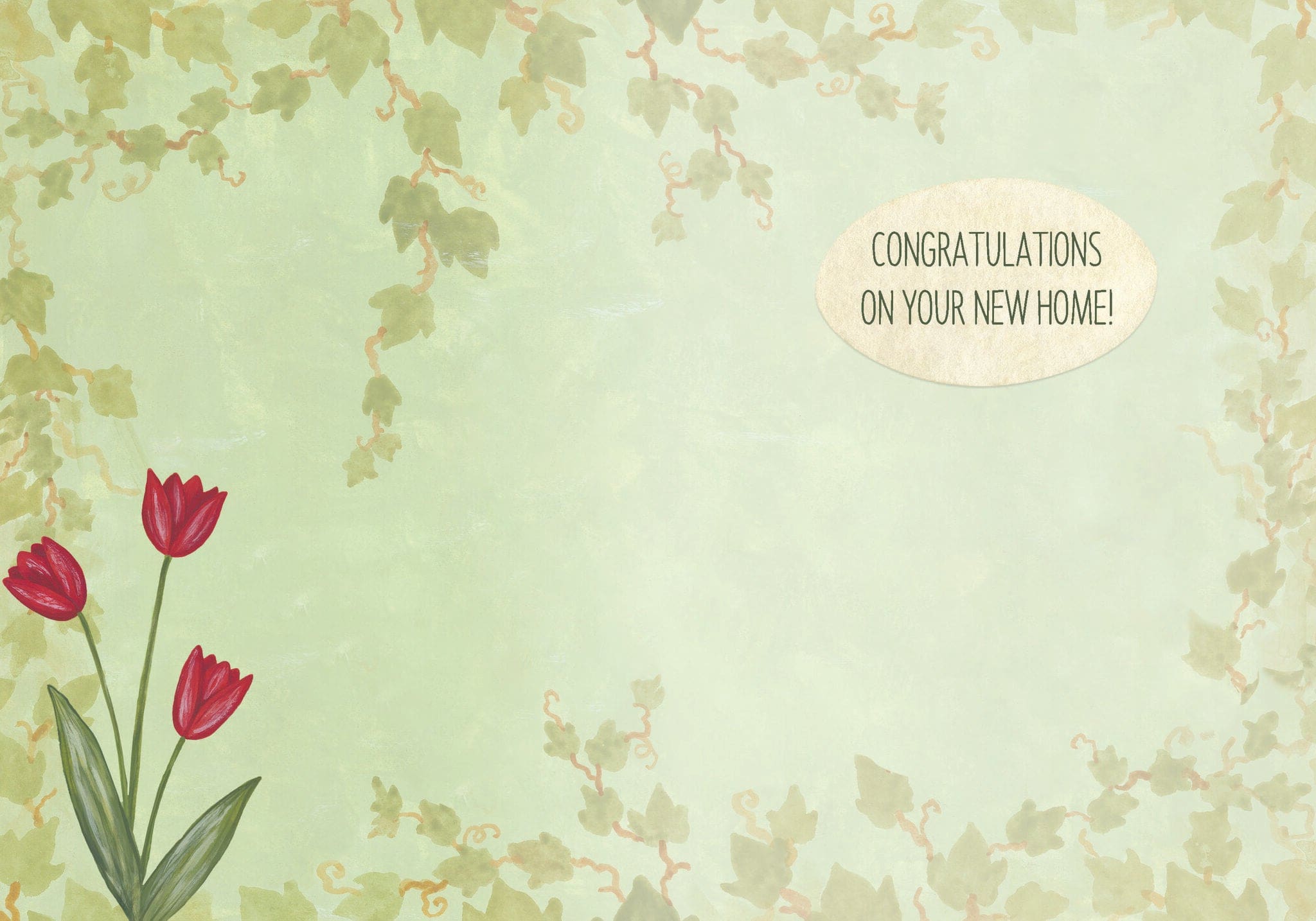 Each card measures 5″x7″ (13cmx18cm) and is printed in full colour on linen paper, comes with a coordinating colour envelope. Printed in Canada. INSIDE: Congratulations on your new home!