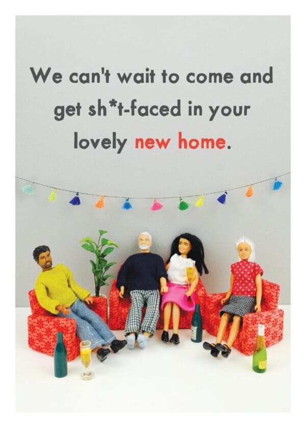 Greeting card measures 5 x 7″ and includes colourful envelope. INSIDE: There™s boxes everywhere, but where are the drinks? Printed in Canada