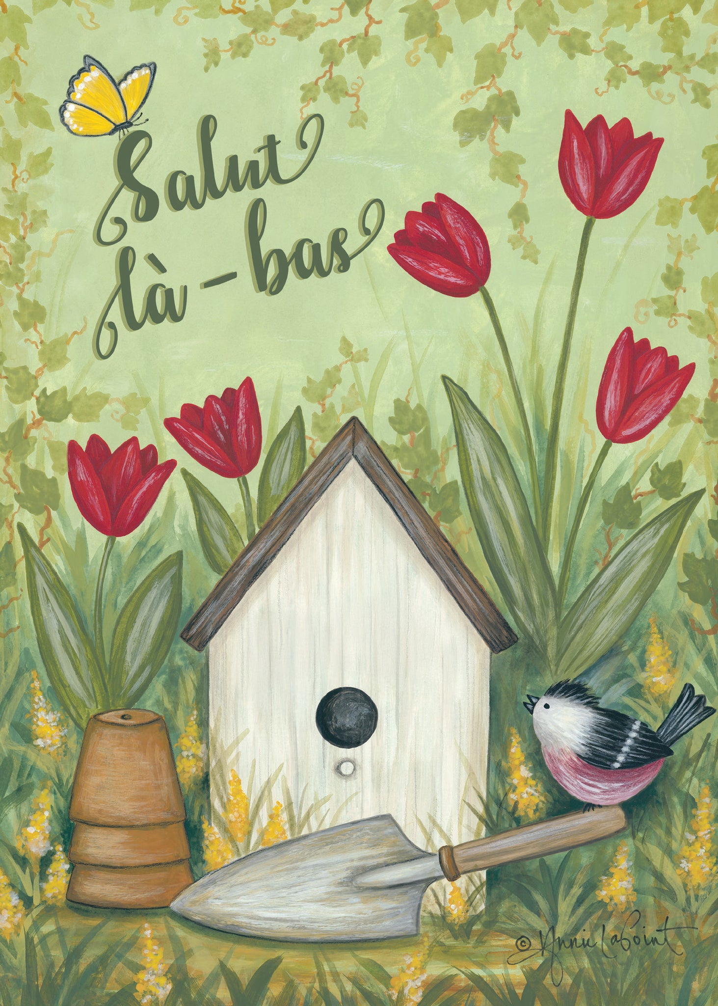 Carte 5″ x 7″ imprimée sur du papier lin couleur. À l’intérieur: Félicitations pour votre nouvelle maison Imprimé au Canada.