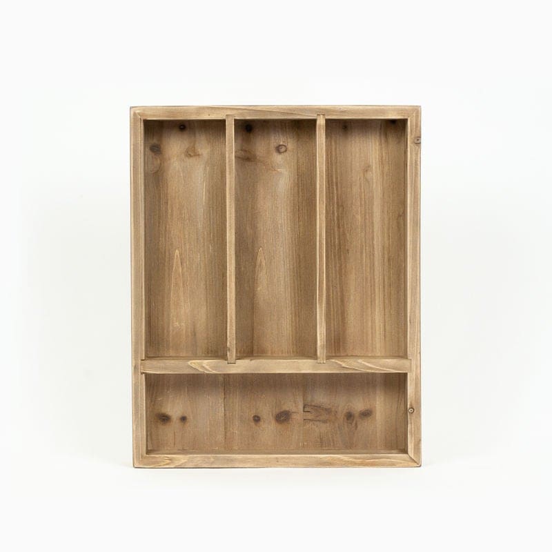 15.75″x 12.5″x 2 wood utensil organizer tray, natural fir wood. Organize every drawer in your house, beautifully!