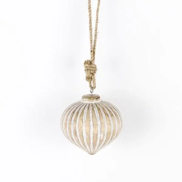 3″x 3″x 3 mango wood ornament. Mango wood pieces are carved from the mango tree, a sustainable hardwood from India. The visible colors and grain variance make each piece beautiful and unique.