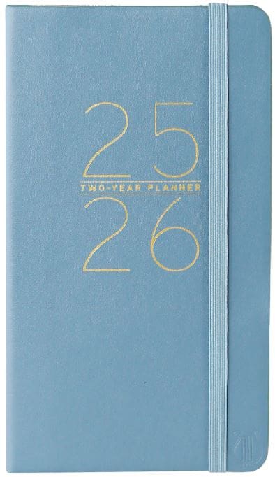 29-month planner also contains previous and next month calendars for scheduling reference. Features premium quality cream paper stock and a dark grey grid, vegan leather cover and elastic closure. Measures 3.625″ x 6.75″