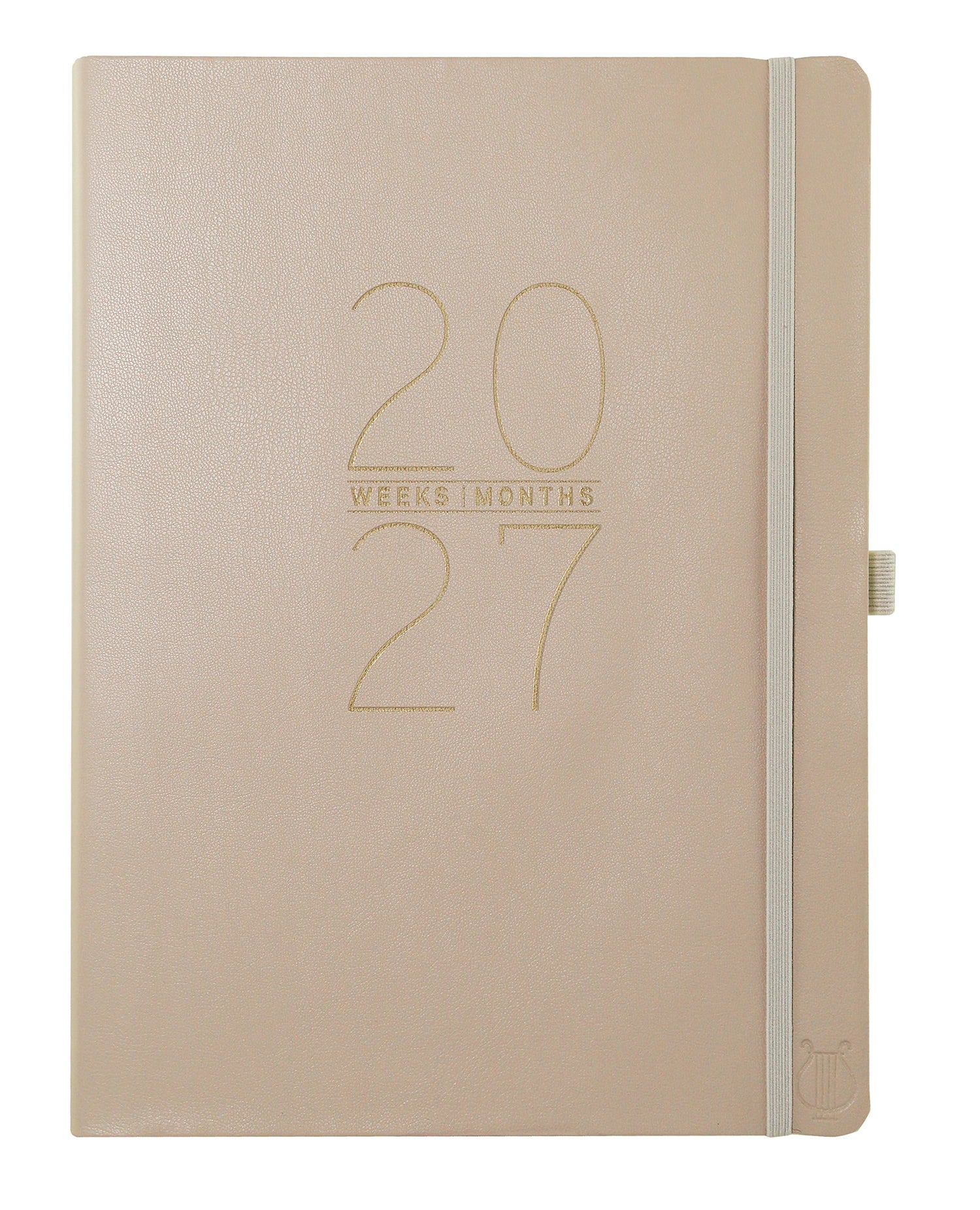 18-Month planner measures 6″ x 8″ with weekly and monthly grids, elastic closure and pen loop. Soft vegan leather cover. Will start shipping in August 2026
