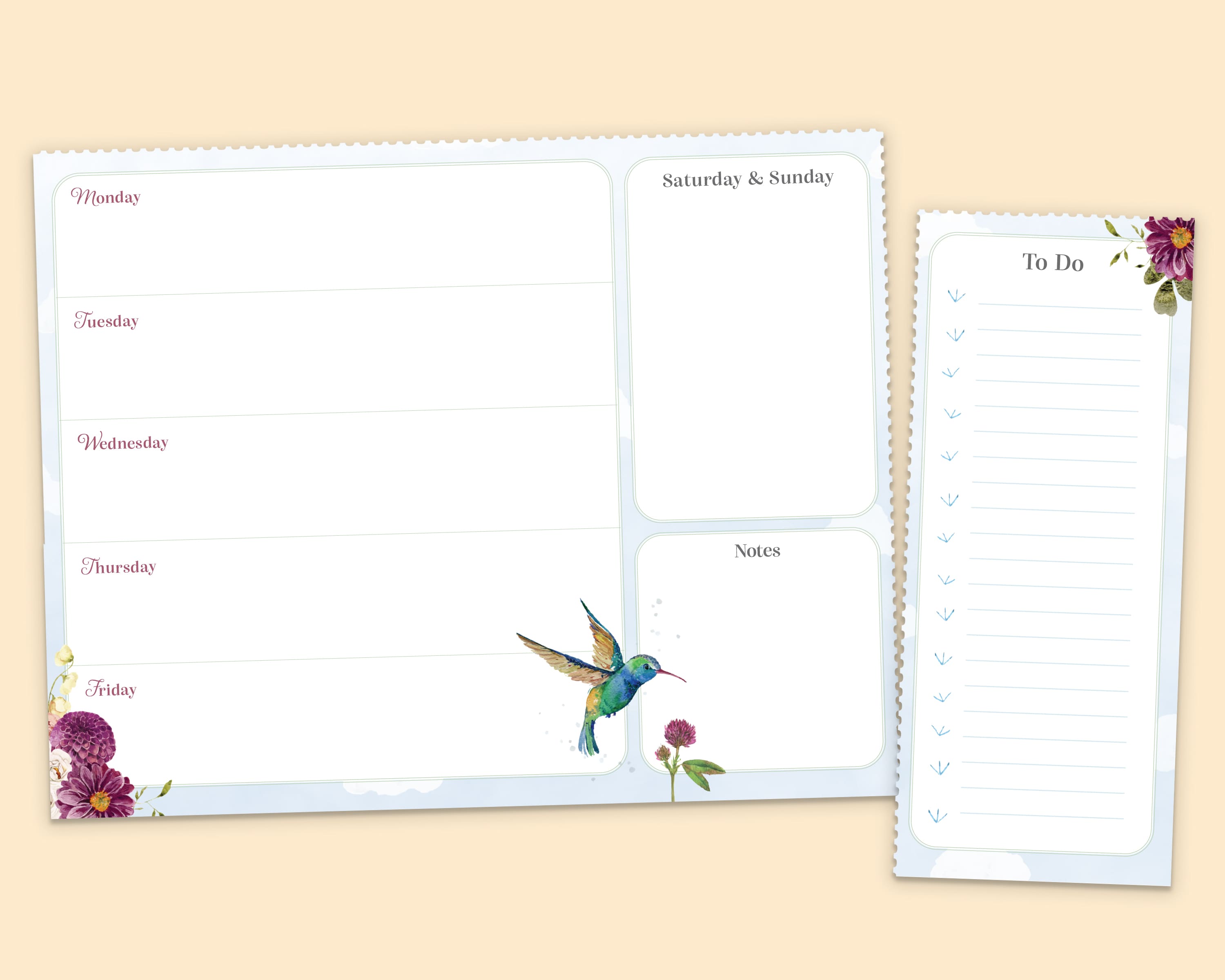 Planning has never been this stylish! The Hopper Weekly Planners include 55 pages on a perforated pad. Along with a perforated ‘To Do’ List Pad. Packaged in cello decorated with Hannah the Hummingbird. SIZE: 10.5″ X 7″