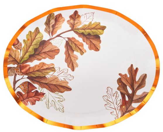 Wavy edge of this 13.75″ x 11″ paper platter plate is complemented by accents of gold foil to harmoniously blend modern style with timeless elegance. Includes 8 plates per pack.
