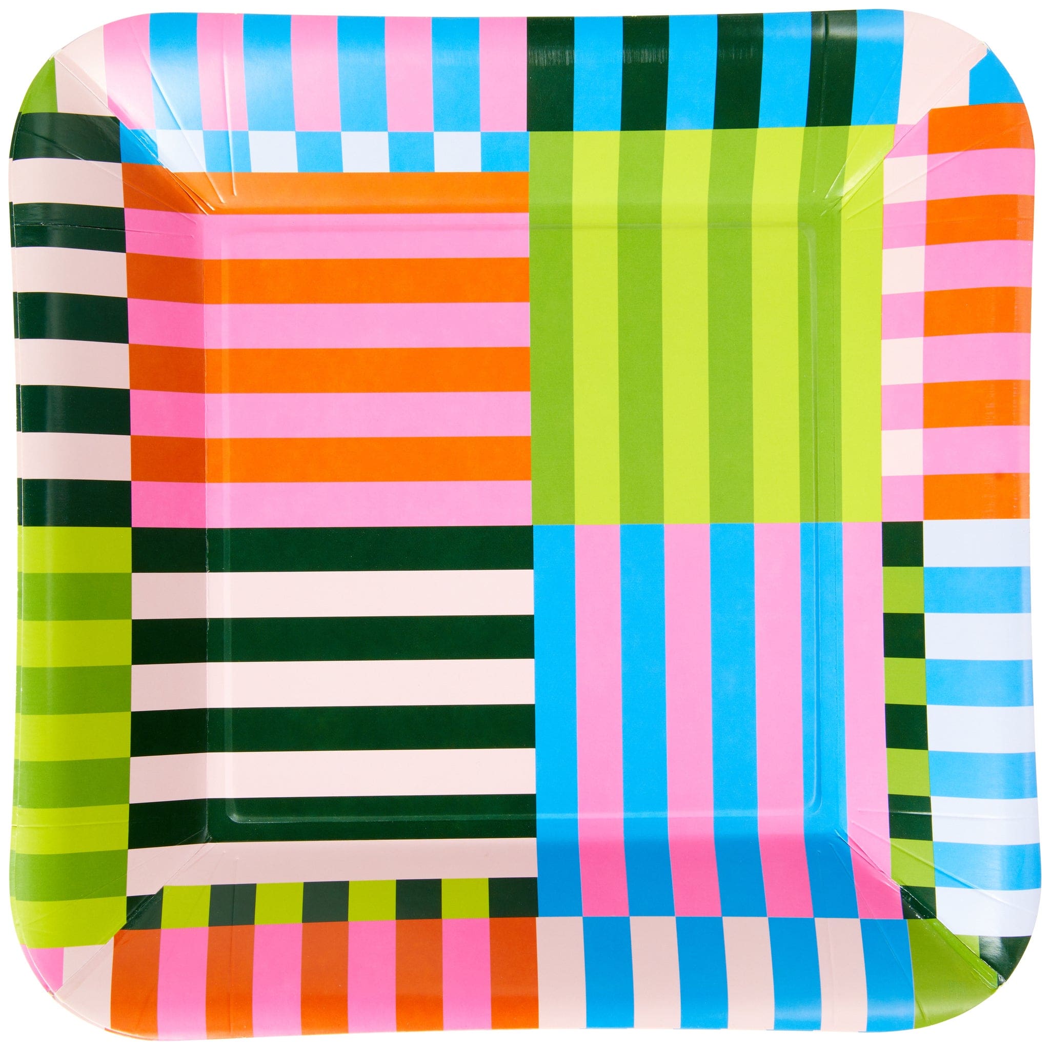 10.25″ Bold Stripe square dinner plates. 8 Count per pack.