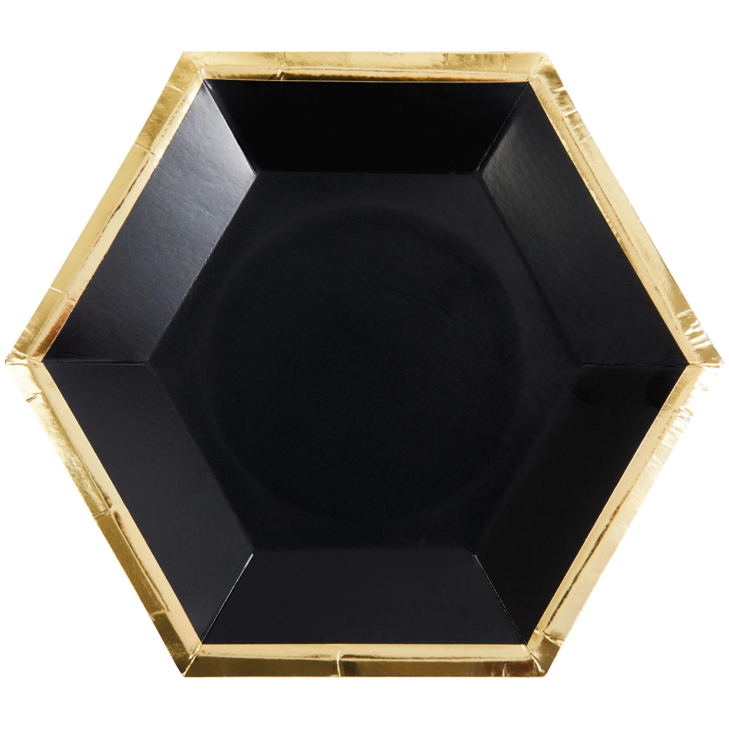 8 CT Die cut hexagon shaped lunch plates. with gold foil accents.