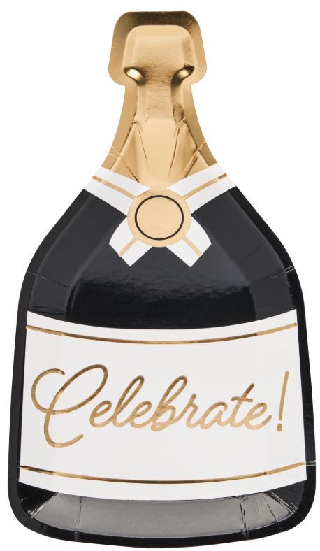 These ruffled edge 8.75″ die-cut champagne bottle- shaped paper plates are the perfect everyday option that work great for any occasion! Includes 8 plates per pack.