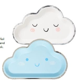 12.5″ x 7″ Little Cloud paper appetizer plates. Plates feature die cut cloud shape and come assorted in two colors blue and white (4 each of 2 assorted colors) . 8 Count per pack