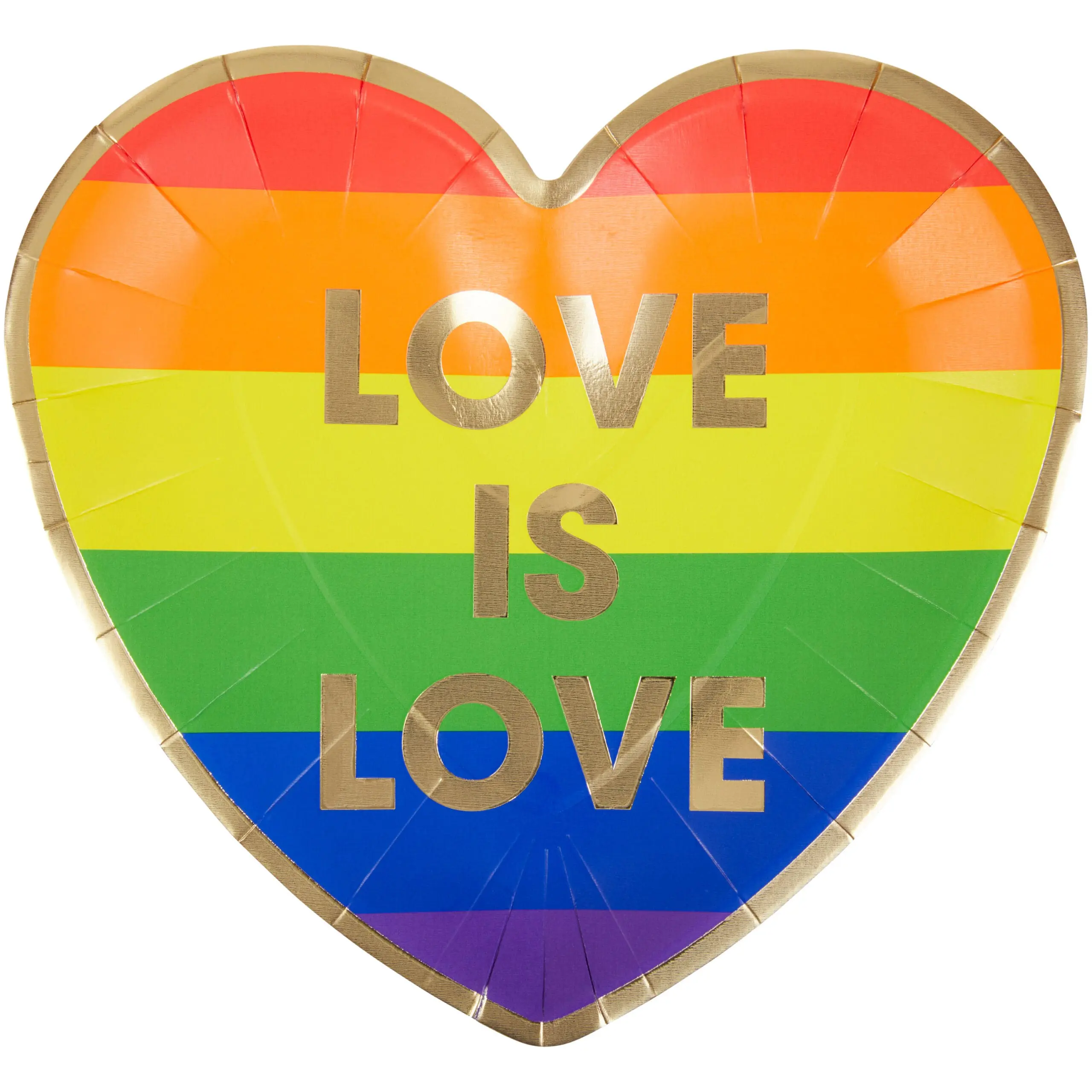 8 CT Die Cut Heart Shaped Dinner Plates with gold foil accents.
