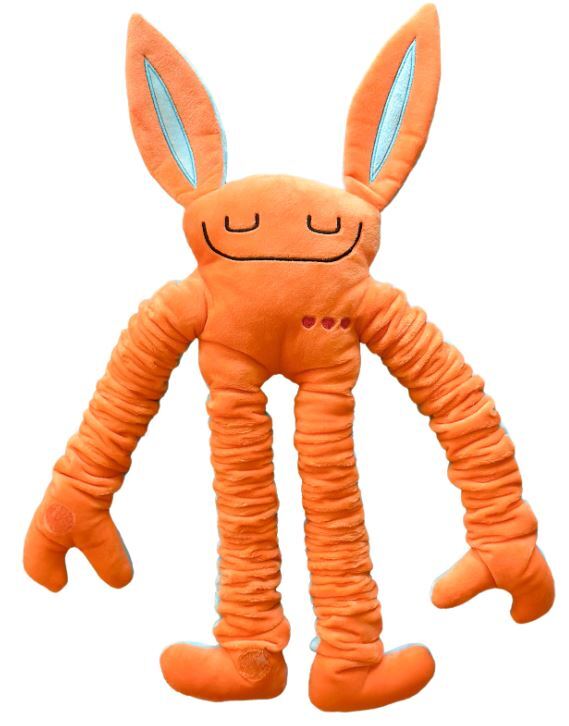 Stretchable Mushie has velcro on hands and feet to hold onto and hug, as well as a satisfying popping sensory sound when hands legs are extended and collapsed. Measures 20″ x 7.5″ x 2″