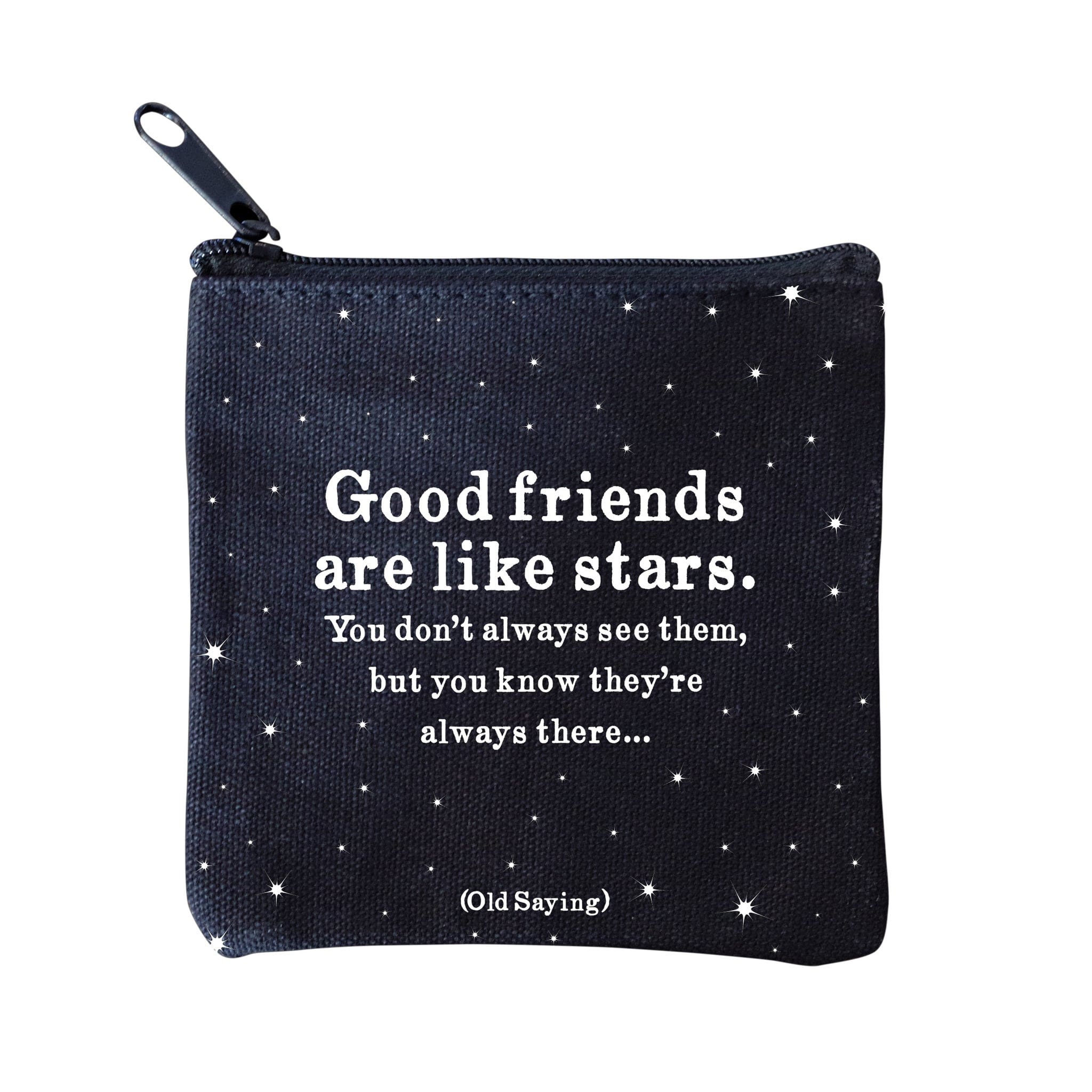 4 1/4″ square mini pouch with zipper closure. 100% 12 oz. cotton canvas.good friends are like stars. you don’t always see them but you know they’re always there…