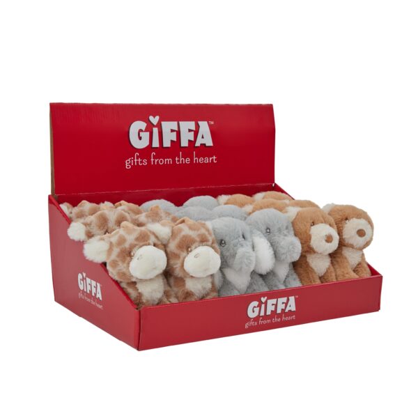 Prepack includes 8 each of 9″ Cuddly Critters Rosey and Bobby, and 4 each of 9″ Cuddly Critters Stuart and Papi. Comes with free cardboard counter display.Surface Washable.