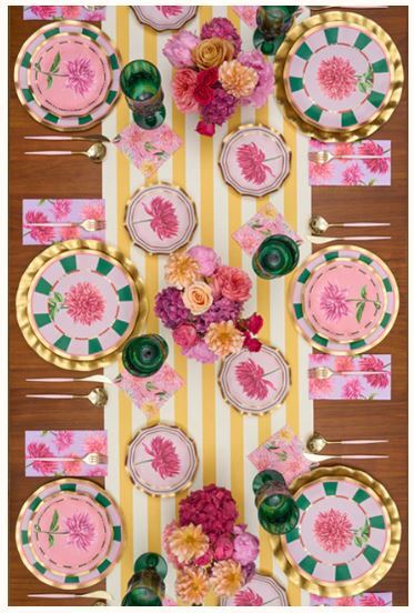 Includes full Dahlia Garden paper collection (12 cocktail napkins, 12 guest napkins, 12 appetizer bowls, 12 salad plates, 12 dinner plates). No display included.