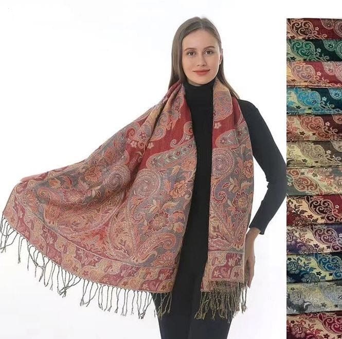 Material: 45% Viscose 55% Polyester. Prepack has 12 cols in luxurious paisley pattern. 28″ x 74″ with FringesHand Wash Or Dry Clean Only