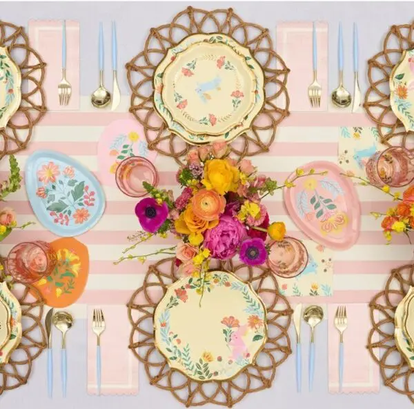 Includes full Folklore Easter paper collection (12 cocktail napkins, 12 guest napkins, 12 die-cut lunch napkins, 12 die-cut salad plates, 12 salad plates, 12 dinner plates). No display included.