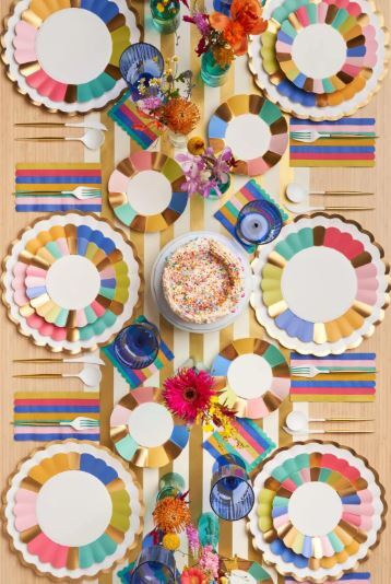 Includes full Panoply paper collection (12 cocktail napkins, 12 guest napkins, 12 appetizer bowls, 12 salad plates, 12 dinner plates). No display included.