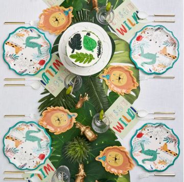 Includes full Party Animal paper collection (12 lunch napkins, 12 die-cut plates, 12 dinner plates). No display included.