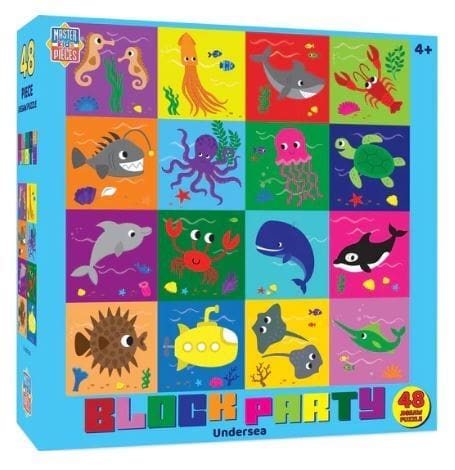 Designed for children aged 4 and up, this engaging puzzle features 16 colorful squares, each showcasing undersea creatures such as a a whale, octopus, sea turtle, shark, and more.