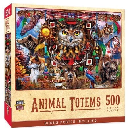 This intricate collage brings together a vibrant array of Native American totems and animal symbols, each piece carefully designed to reflect the deep spiritual connections and storytelling traditions of Native cultures
