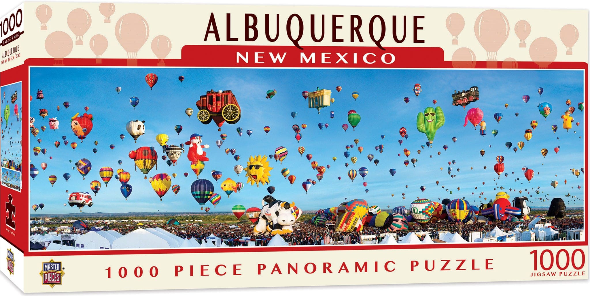 1000pc 13″ x 39″ Albuquerque Balloons Panoramic puzzles is a great way to learn more about America, and have fun in the process! This panoramic photograph of Albuquerque was taken by James Blakeway.