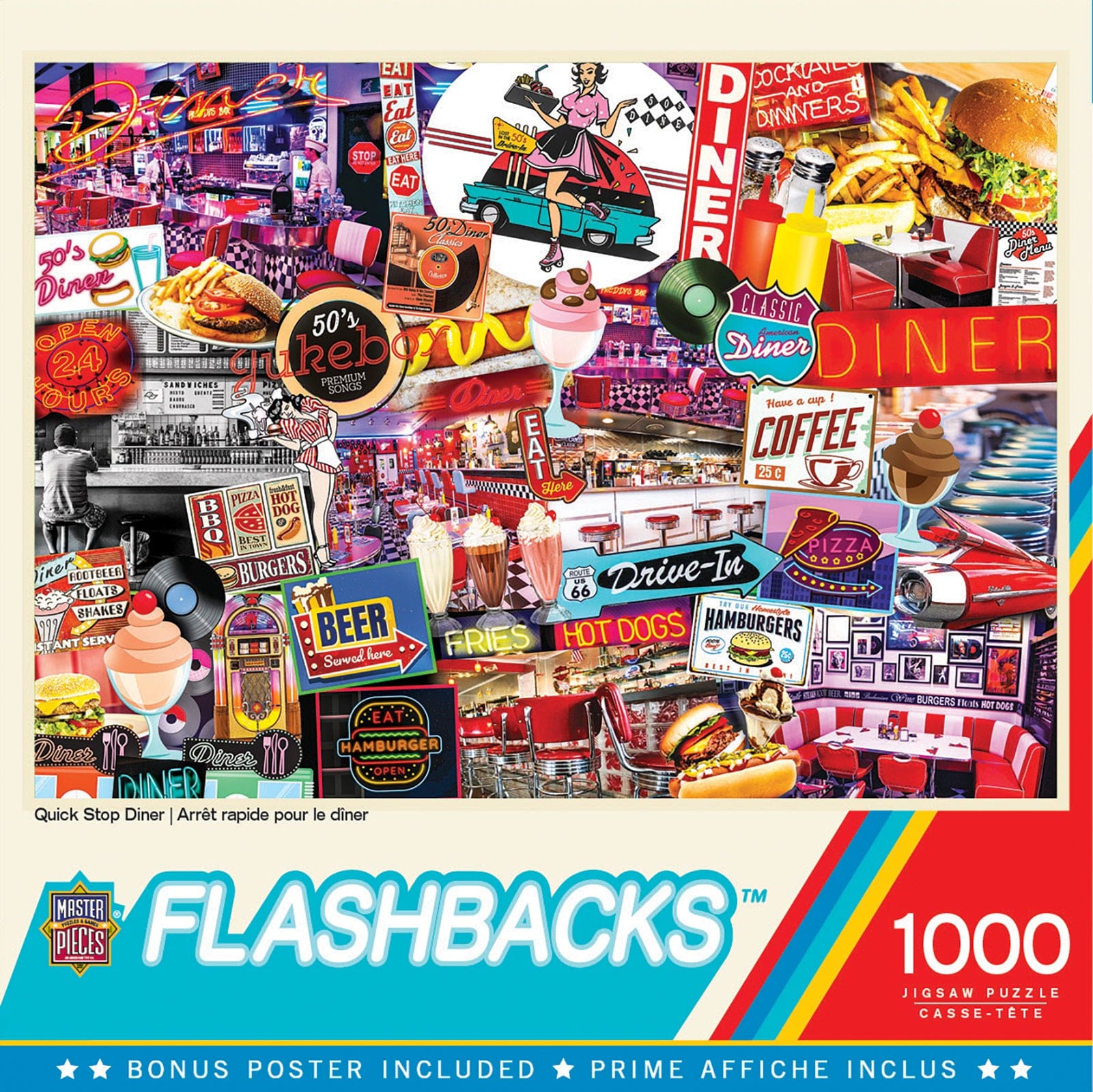 19.25″ x 26.75″ 1000pc Flashbacks puzzles has a nostalgic feeling of different thinks that take you back to your childhood days. Made from linen/recycled materials.