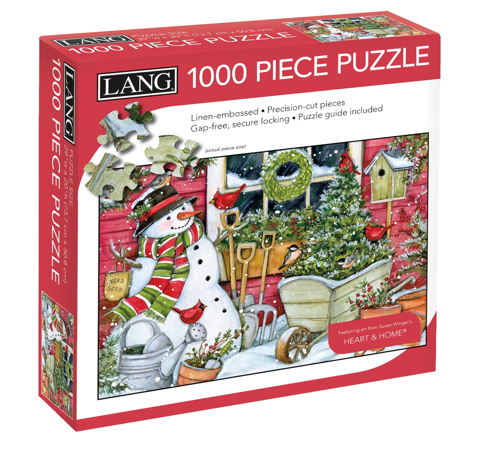 The LANG 1000 Piece Puzzle includes elegant linen-embossed pieces that securely lock in place and come in a resealable plastic bag. It also comes with an art print guide to help solve this challenging puzzle!