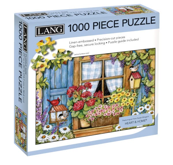 The LANG 1000 Piece Puzzle includes elegant linen-embossed pieces that securely lock in place and come in a resealable plastic bag. It also comes with an art print guide to help solve this challenging puzzle!