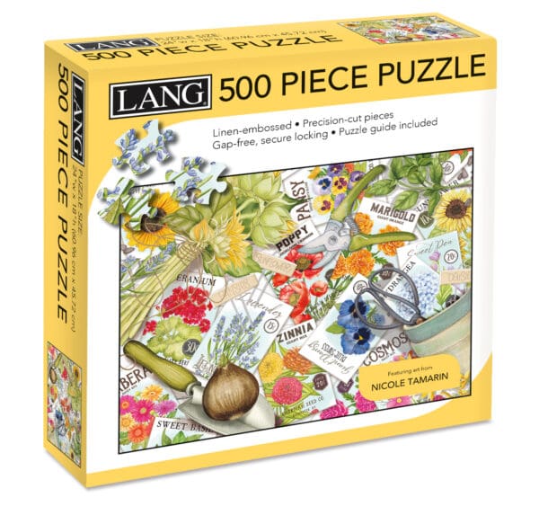 The LANG 500 Piece Puzzle includes elegant linen-embossed pieces that securely lock in place and come in a resealable plastic bag. It also comes with an art print guide to help solve this challenging puzzle!