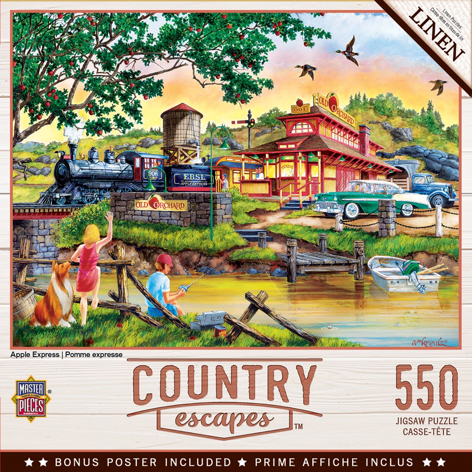 24″ x 18″ 550pc puzzles was painted by William Kreutz. Made of linen/recycled material.