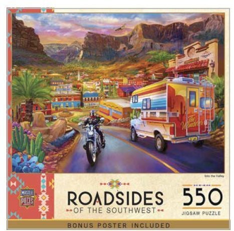 This old southwestern town promises a festive night on the city square while a lone motorcycle heads out before the night fall.