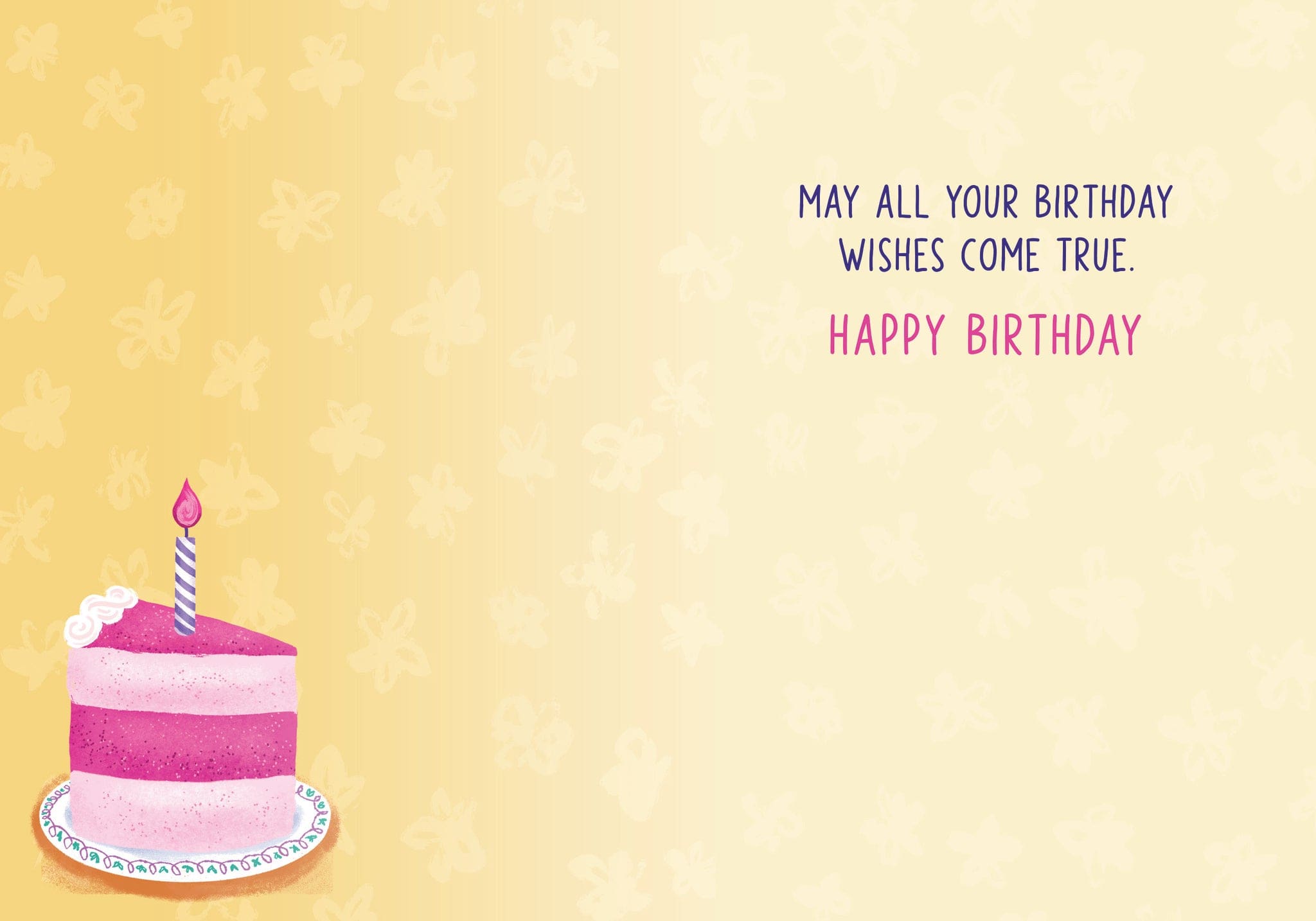 Each card measures 5″x7″ (13cmx18cm) and is printed in full colour on coated paper, comes with a coordinating colour envelope. Printed in Canada. Inside greeting: May all of your birthday wishes come true. Happy Birthday