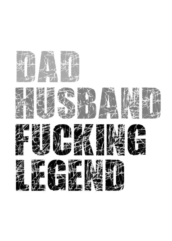 This greeting card measures 5 x 7 and comes with colourful envelopes. Dad Husband Fucking Legend Inside: Happy Birthday. Printed in Canada