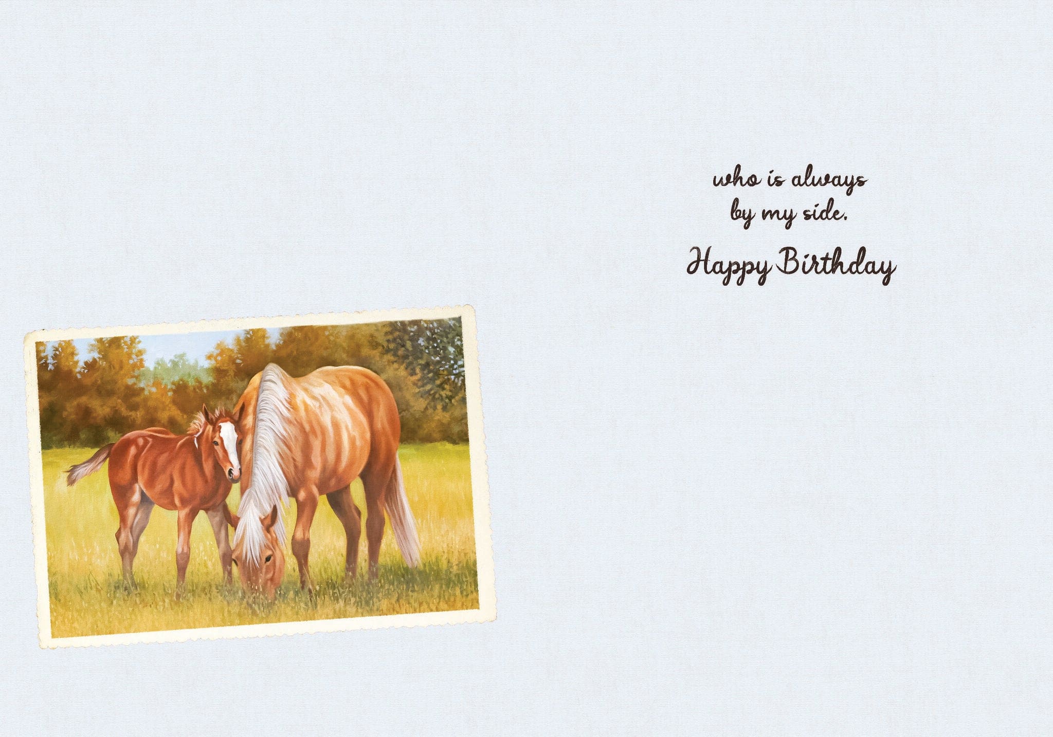 Each card measures 5″x7″ (13cmx18cm) and is printed in full colour on linen paper, comes with a coordinating colour envelope. Printed in Canada. Inside greeting: who is always by my side. Happy Birthday