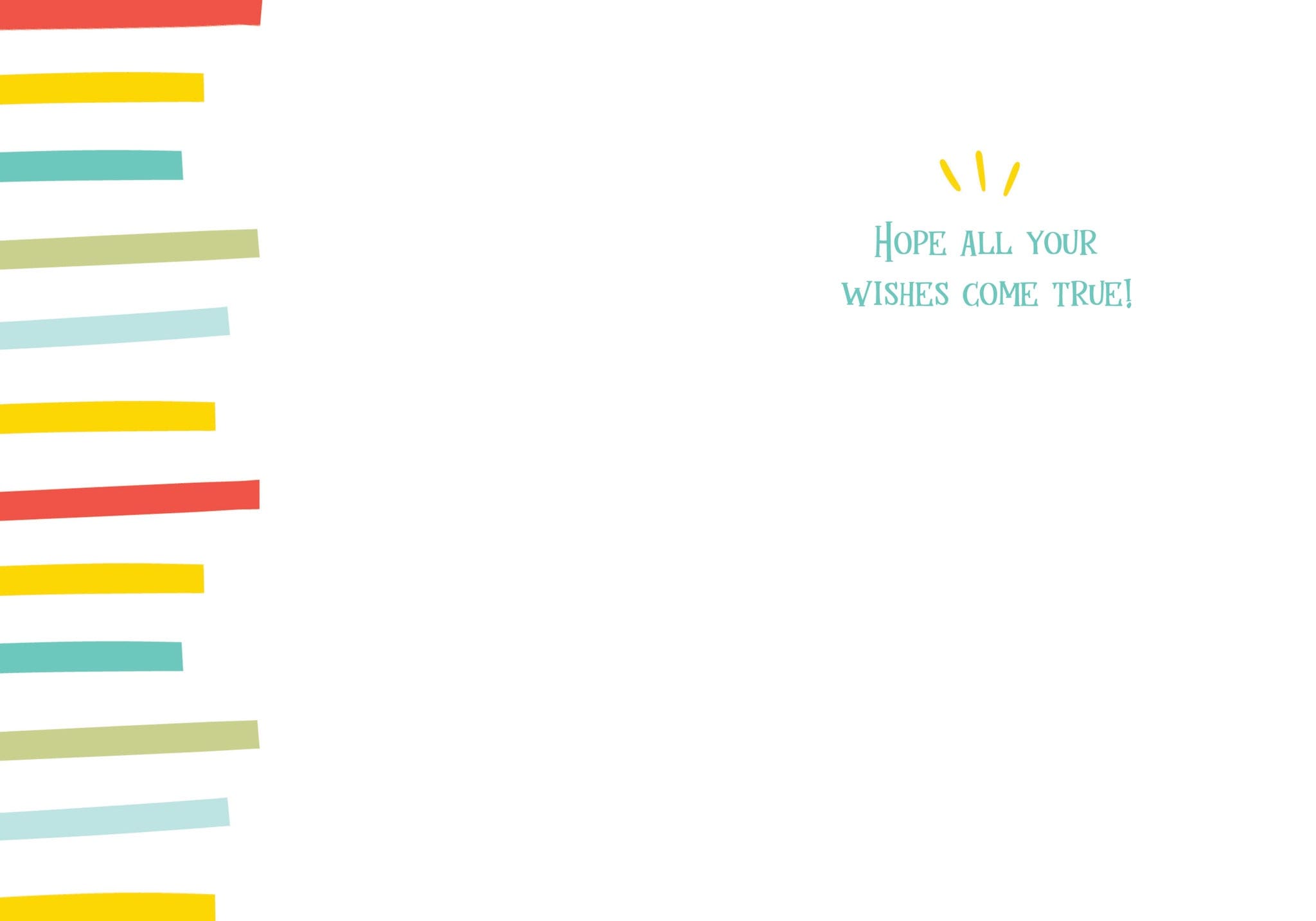 Each card measures 5″x7″ (13cmx18cm) and is printed in full colour on smooth paper, comes with a coordinating colour envelope. Printed in Canada. Inside greeting: Hope all your wishes come true!