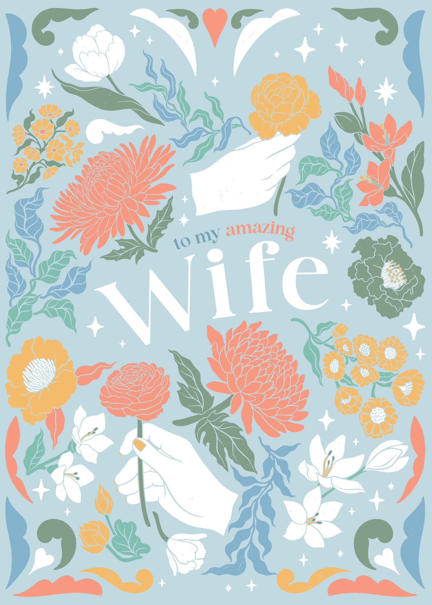 4.5″x6.25″, printed on linen paper, with coordinating envelope. Printed in Canada. Inside greeting: Your love brings beauty to every day. Happy birthday, my love