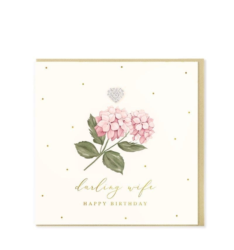 Mad Dots Cards. This 15cm x 15cm greeting card is printed on cardstock, features gold foil details and is embellished with a diamante jewel. Cellophane wrapped with a pearlescent gold envelope. Made in England. INSIDE: Blank